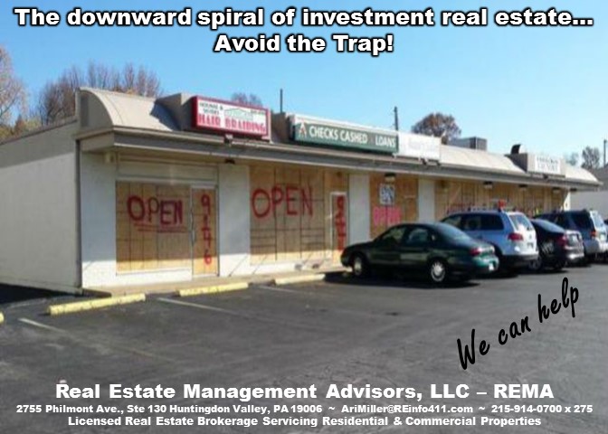 If your investment real estate is falling into a viscous downward spiral, contact REMA before it’s too late.